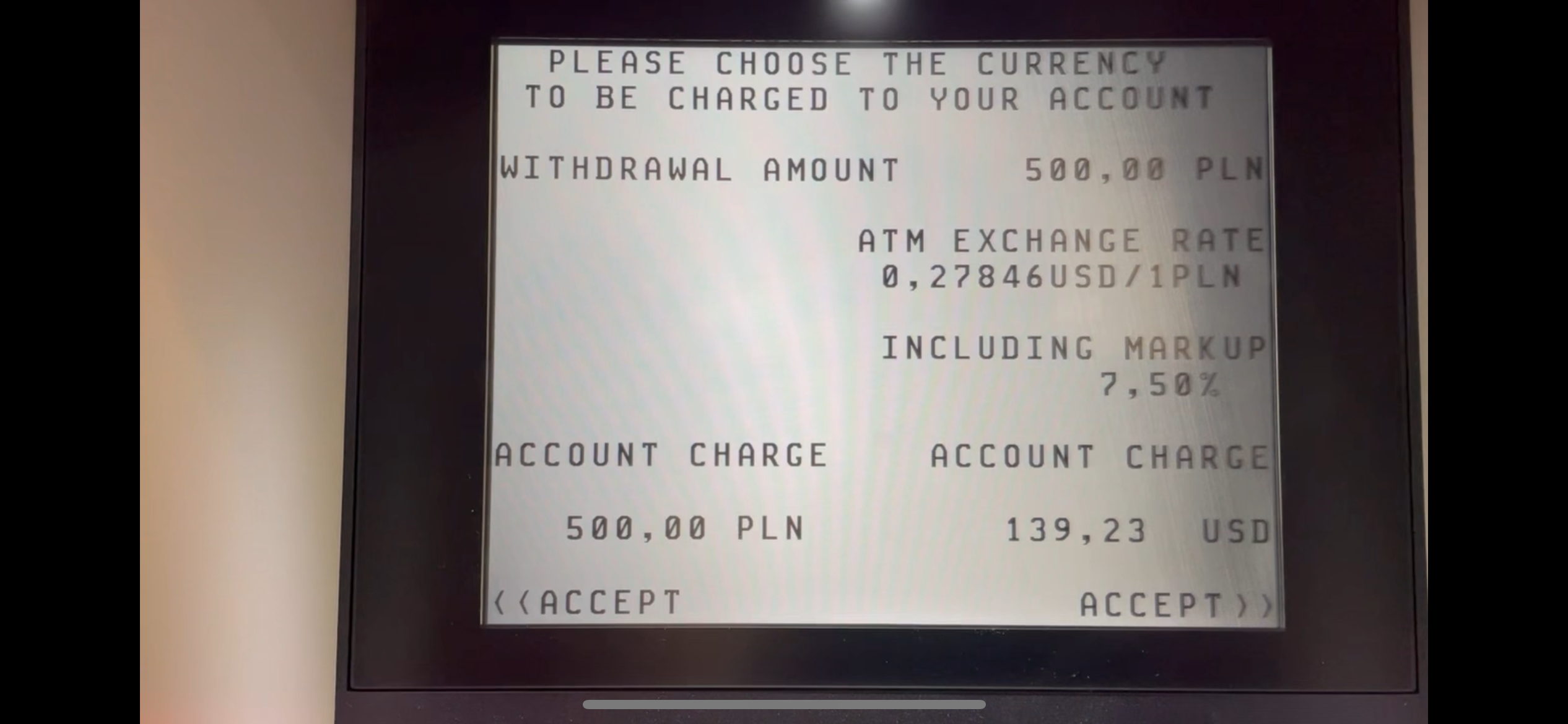 - 폴란드은행 Bank Pekao는 설정된 금액만을 출금할 수 있습니다.