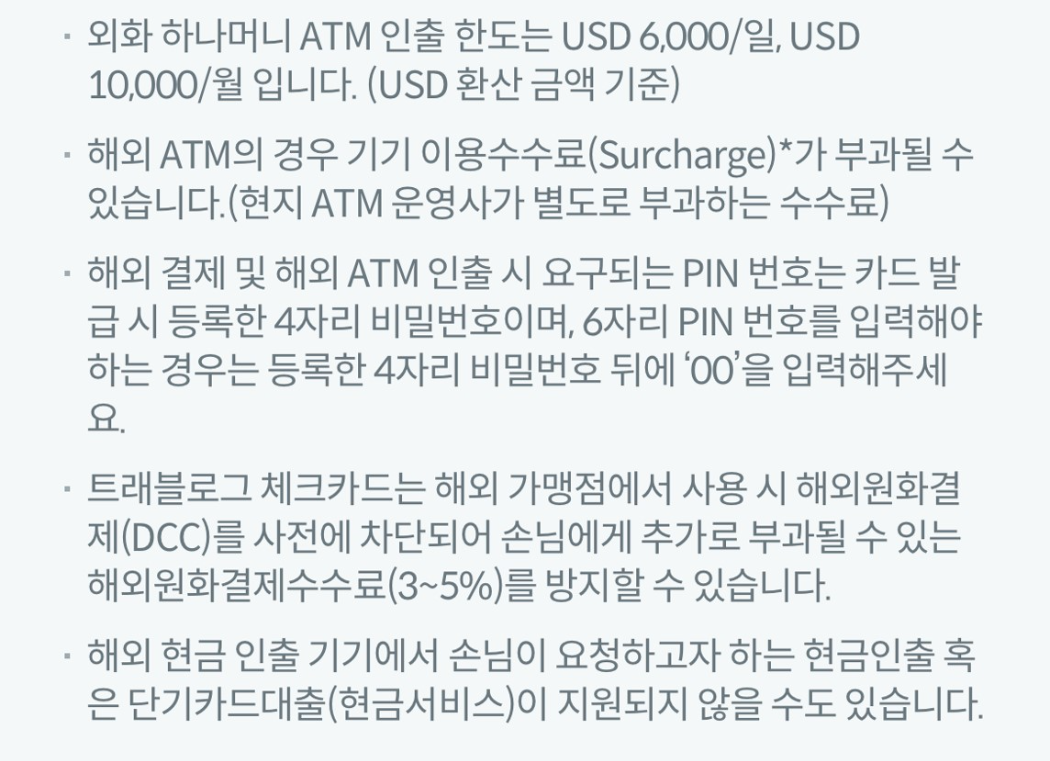 하나카드 트래블로그 카드신청, 사용방법, 충전방법, ATM 출금, 주의사항